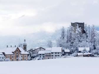 Innerjuvalt Castle (often referred to as Oberjuvalt) rises majestically high above the southern end of the village of Rothenbrunnen on a rocky outcrop.