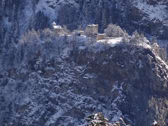 A ruin worth seeing on a rocky spur high above the Albula at the entrance to the Schin Gorge.