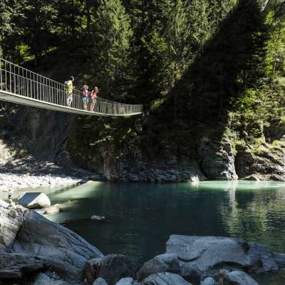 Spanning the largest and wildest ravine between Sils i.D. and the Viamala Gorge is a bridge unlike any other: The Traversiner footbridge by world-famous bridge builder Jürg Conzett is a masterpiece of engineering.