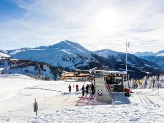 In the 3 areas on the Dreibündenstein, high-quality TSL snowshoes and crossblades can be hired flexibly at one station and returned at another - ideal for the circular tours!