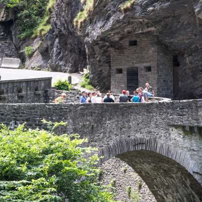 2000 years ago, the Romans traveled through the Viamala Gorge. Later, local muleteers carried their valuable goods through here. Then came the stagecoaches, and today there are 40-ton trucks and tens of thousands of passenger cars. Our tour guides, the "Guida Viamala," will show you the Viamala Gorge natural monument and its fascinating transit history in a 60-minute tour.