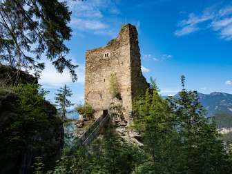 The ruins of the four-storey residential tower are a striking eye-catcher and a landmark of Paspels.