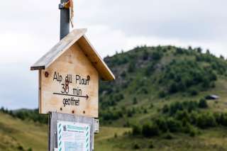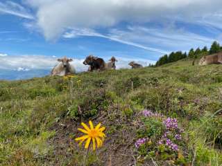 We, Günther and Nadia from South Tyrol—often with the help of Kevin and Sally (on their days off)—have been managing this alp for the 17th summer in a row. We milk the cows belonging to farmers from Scheid and Feldis and use the milk to make fine Graubünden alpine cheese and alpine butter. In addition to the dairy cows, we also care for about 40 pigs, who get to spend their alpine summer here.