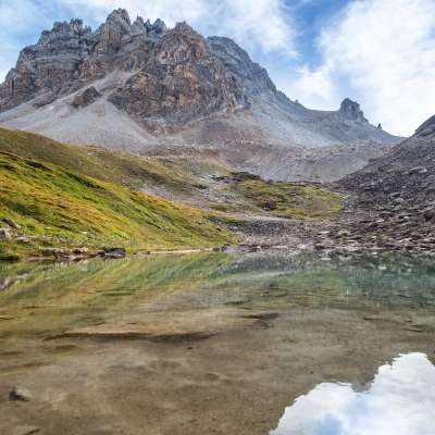 On the way - most of the ascent to Farcletta digl Lai Grand (2659 m above sea level) is done - the view glides over Alperschälli-Seeli. The small, clear lake could be ingloriously dismissed as a puddle if it weren't a magical splash of color in the middle of the barren, stony landscape. And it's in a welcome place, because you want to take a break here. Sitting on a stone - no, the meltwater-fed lake is too frosty for a dip - you take some tasty treats out of your rucksack. Yes, these are also part of the standard equipment. Finally, while picnicking, you enjoy the growing awareness that you are completely alone in the middle of the mountains. Alone? Perhaps yes. Or maybe not? Because it's quite possible that you'll come face to face with the Capricorn, the king of the Alps.