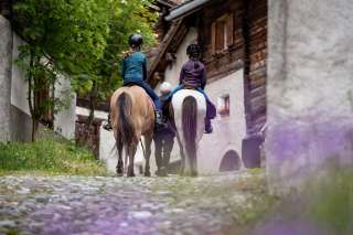 Elisabeth Rüedi's Icelandic horses offer a completely different way to explore the Rheinwald . The four-legged friends will lead you along old paths through the alleyways of Splügner Oberdorf, across the fields and along the Hinterrhein.