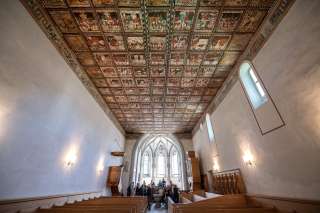Using contemporary museological means, the exhibition contributes to the understanding of church ceilings and medieval imagery. Visitors are given information about the historical and geographical environment in which such a work of art could be created. The exhibition provides an insight into the painter's workshop of a medieval artist. It shows the special construction of the ceiling and reports on the state of preservation and the age of the panels. The pictorial program and the meaning of the paintings are explained in a short film. Individual themes of the picture ceiling are presented in more detail. The exhibition invites visitors to explore the world view of the Middle Ages.