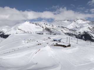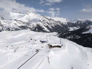 Next to the top station of the gondola lift, on the Tanatzhöhi at 2,144 meters above sea level, is the mountain restaurant with a terrace with a magnificent view of the mountains.