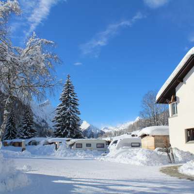 In winter, the campsite is the ideal starting point for skiing (Splügen-Tambo ski area), cross-country skiing (direct access to the cross-country ski trails) and winter hiking. In summer, the region offers a wide variety of hiking trails (viaSpluga, Walserweg) and leisure activities. The vacation camp right next to the campsite also offers bed & breakfast accommodation (rooms with shared showers/WC). For groups (up to 38 people), the entire house including self-catering kitchen is available.
