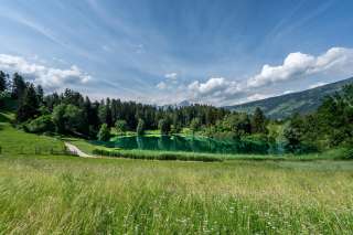 In the Domleschg castle and fruit country lies the bathing lake, romantic and warm, with temperatures well over 20 degrees in summer. A visit can be perfectly combined with a walk to Almens, which promises a unique view of the Heinzenberg.