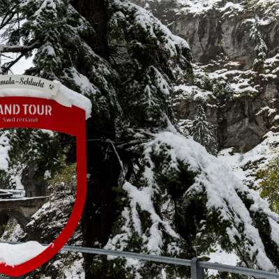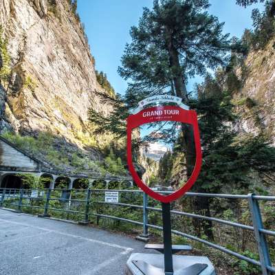 The Grand Tour of Switzerland photo spot is located in the heart of the Viamala Gorge and is easily accessible.