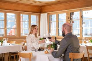 When it comes to wine, the focus is on the Bündner Herrschaft region. The drinks menu also includes herbal teas from the Poschiavo region and a selection of beers from the Monstein brewery.