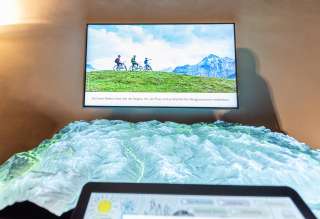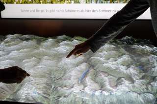 With the interactive relief in the entrance hall of the Hotel Alte Herberge Weiss Kreuz in Splügen, the cultural heritage and the formative history and landscape processes of the Rheinwald region can be experienced digitally.