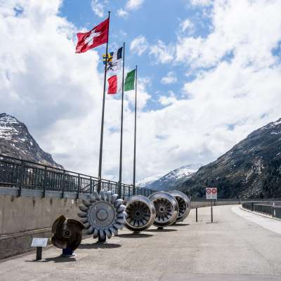 The dam wall of the Valle di Lei lies on Swiss territory, while the lake is already in Italy. From the top of the wall, you have an impressive view of the eternal snow of Pizzo Stella and Piz Grisch. The Valle di Lei plant is part of the three-stage power plant group with the Ferrera, Bärenburg and Sils power stations. It produces around 1,410 million kWh of electricity per year. A publicly accessible information center of Kraftwerke Hinterrhein AG is located directly next to the Valle di Lei dam. The individual stages of the entire plant are clearly documented here. There is also a lot of interesting information about electricity production.
