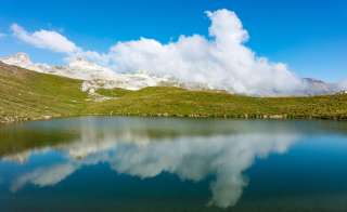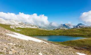 Above the SAC Cufercal hut high above Sufers lies the Lai da Calandari at 2470 m above sea level.