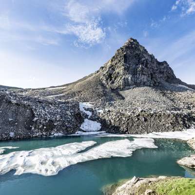 High up on the Schamserberg, just behind the Carnusapass, lies the Lai la Scotga (Romansh for Scots Lake) on the "Via Capricorn" mountain hiking trail in the direction of Carnusa/Glaspass.