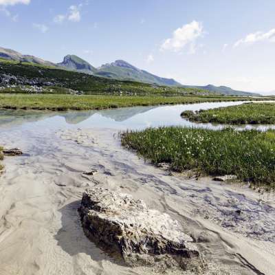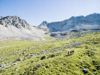 The dreamy Lai Pintg (Romansh for small lake) is located in the Anarosa area behind the Nurdagn Alp (agritourism offer with catering and overnight accommodation) at 2312 m above sea level on the mountain hiking trail in the direction of Farcletta digl Lai Pintg and the SAC Cufercal hut.