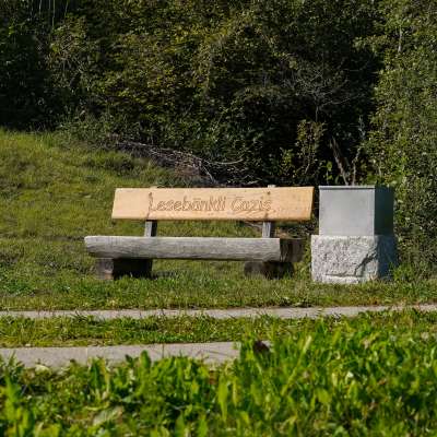 This is exactly what you can now do in the municipality of Cazis. There is a box at four idyllically situated benches. It is filled with books and magazines for young and old. You are cordially invited to look at the books, read them and browse through them. If you get so engrossed in a book that you can't put it down, you can borrow it for a few days or simply come back to the bench to continue reading.