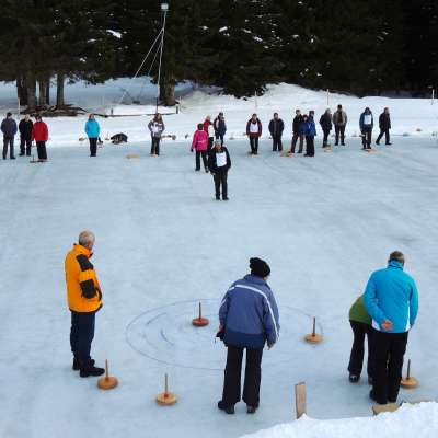 The Patrutg curling club organizes guided night curling for groups of 15 people or more, followed by a raclette party in the club hut. Registration is required to Eisstockclub Patrutg, Philipp Brumm, Tel. +41 406 44 33. The ice rink is not supervised and no liability is accepted.