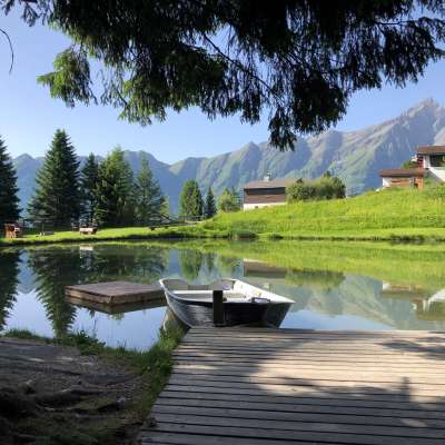 The Patrutgsee is located above Oberurmein right on the edge of the forest. Idyllically situated family paradise with play stream, children's swimming lake, fire pits, jetty and playground.
