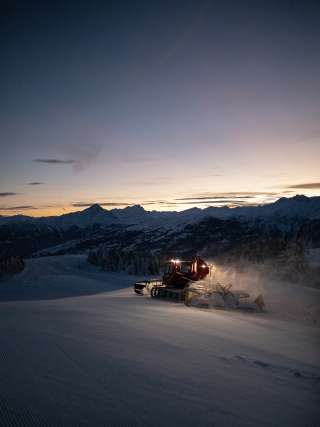 A "cool" tour on the snow groomer that requires skill, an overview and sometimes a little courage. During the expert briefing with the experienced slope manager, you will learn the basics as well as the most important functions of the cockpit. The rules of conduct and safety for a Pisten-Bully driver are also discussed. These are important, after all, you are dealing with a real giant here.