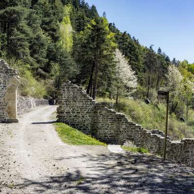 The castle of the Lords of Juvalt, the oldest still flourishing Graubünden dynasty, once stood high above the Hinterrhein. At the foot of the castle rock, the Porta Rhaetica dam blocked the imperial road and thus controlled transit traffic to the important Graubünden passes of Splügen and San Bernardino. From 1216 to 1823, when the "Italian Road" was built on the left bank of the Rhine, all traffic to and from Italy had to pass through the bottleneck of Juvalt. Muleteers, travelers and pilgrims, kings and beggars passed through the Chur Gate and the missing Clevner Gate of the dam.