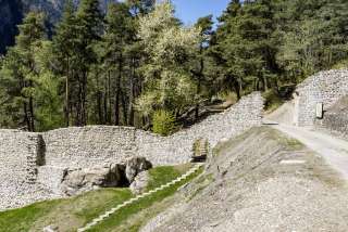 Abandoned around 1500, the dam experienced a renaissance in 1940 as a military obstacle against Mussolini's invasion plans. The 700-year-old walls were supplemented with "Toblerone" tank obstacles, and a fortress including a gold vault was built deep in the rock. Between 2010 and 2013, the ensemble of four monuments of national importance is comprehensively secured.