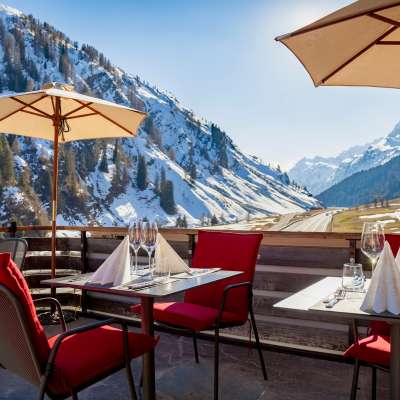 Restaurant with large parking lot directly at the Nufenen exit.