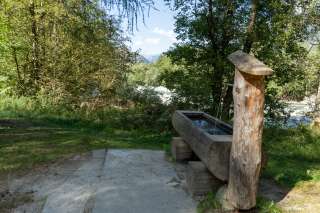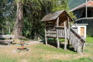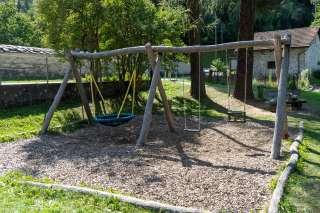 The playground is located directly by the historic wooden bridge. When you cross the bridge from the village, it is immediately on the right-hand side.